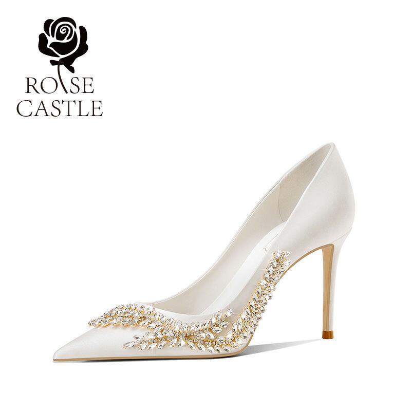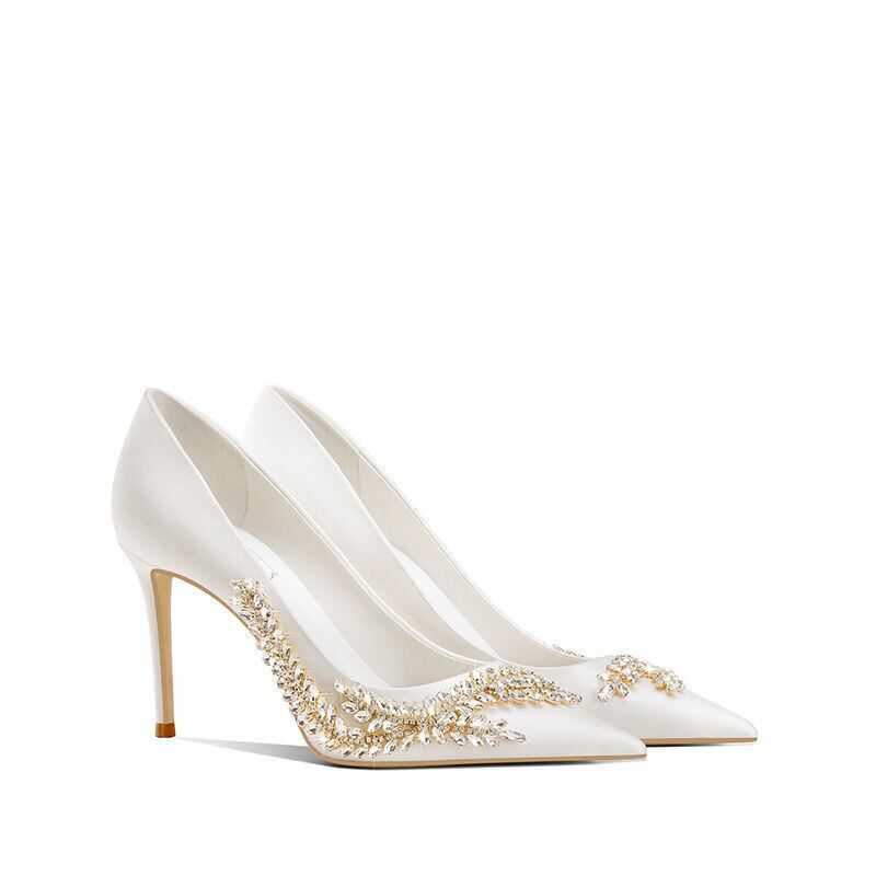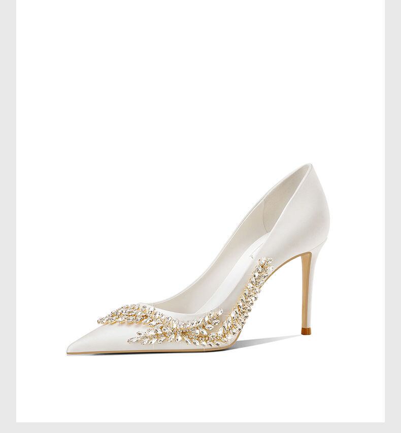 ラインストーンハイヒール ウェディングシューズ ポインテッドトゥ ハイヒール ラインストーン ヒール シューズ ウェディング a3933