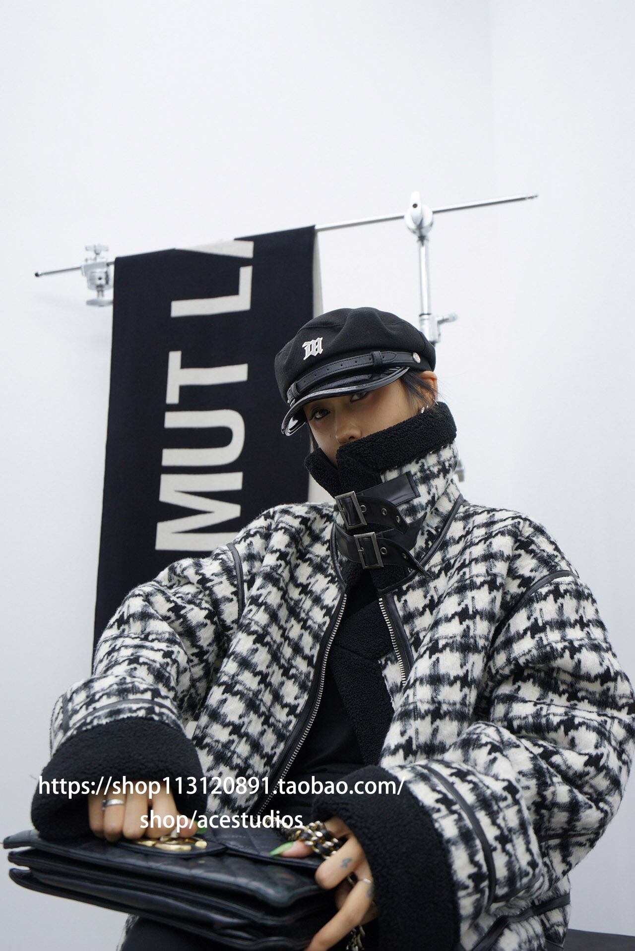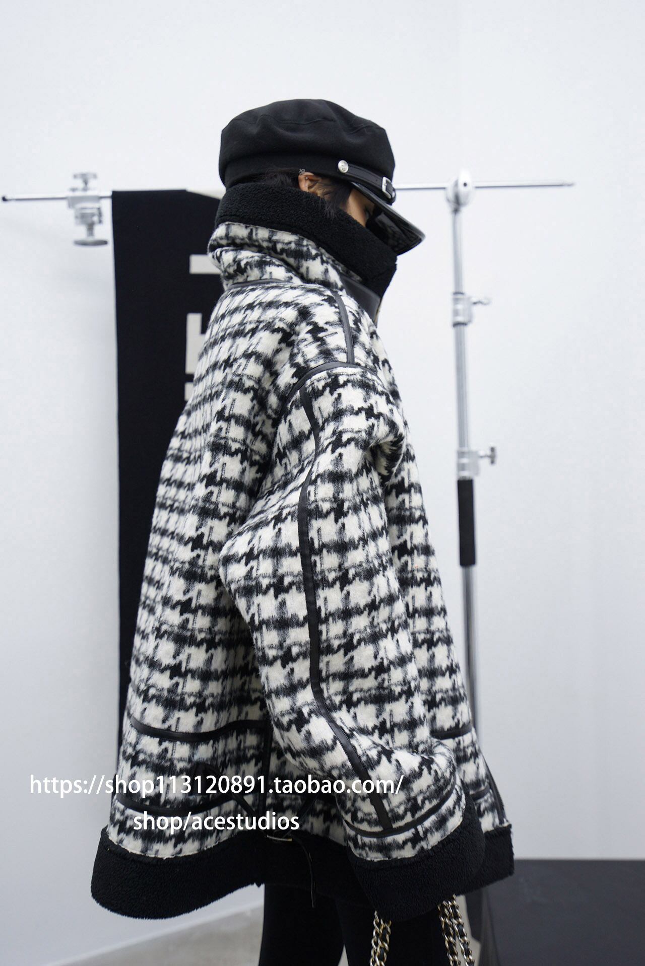 チェック柄ラムウールジャケット ラムウールコート ジャケット コート アウター ベルベット ルーズ スタンドアップカラー a3619