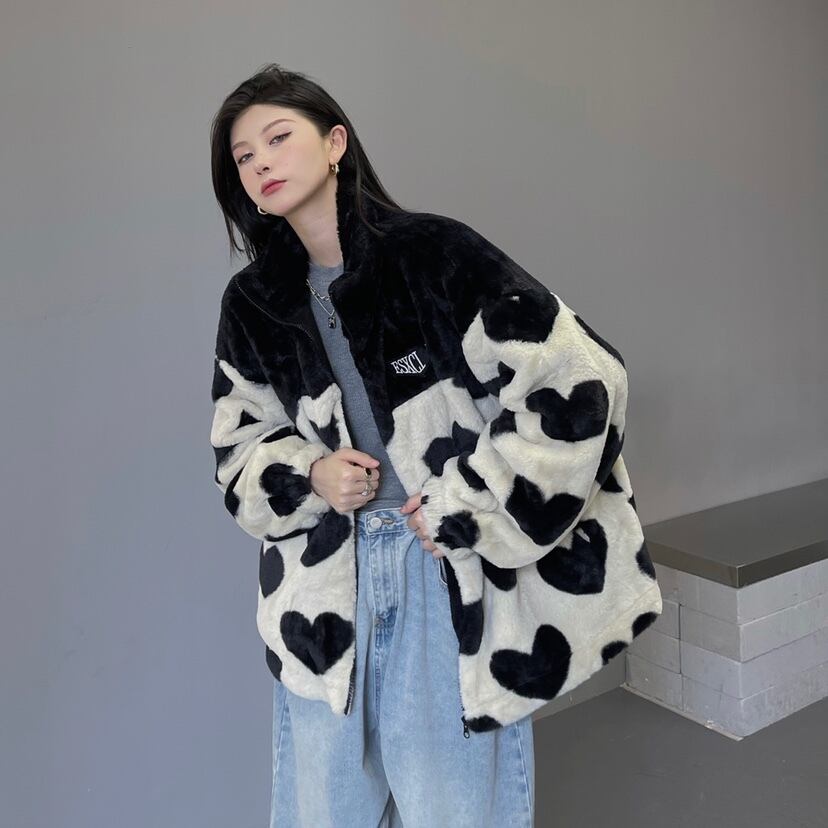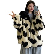 ハート柄 フリースジャケット フェイクファージャンパー ジャケット コート フリース レディース フロントジップ a3841