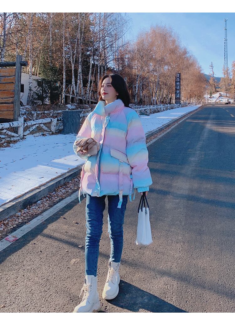 レインボーダウンジャケット ダウンコート コットンパッド入りジャケット ジャケット コート アウター 冬 a4011