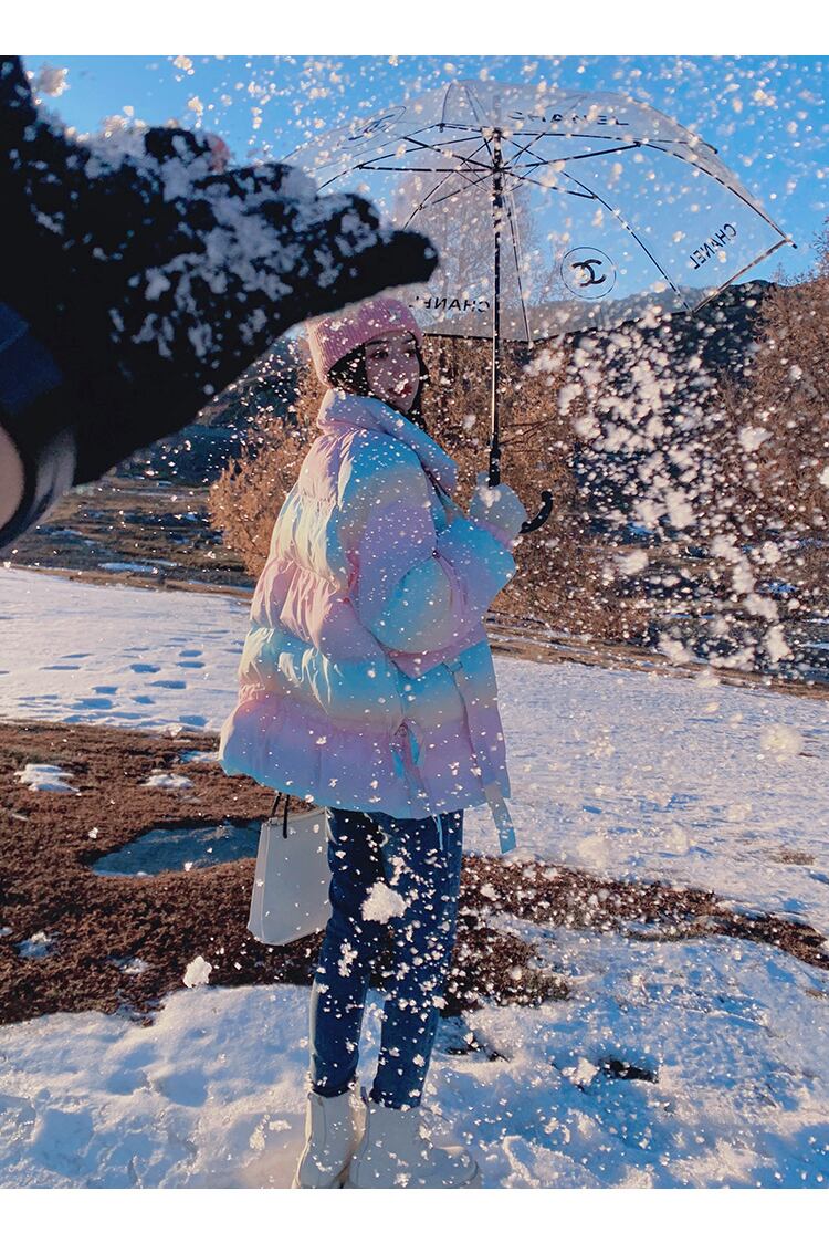 柔らかなレインボーカラーが可愛いダウンジャケット