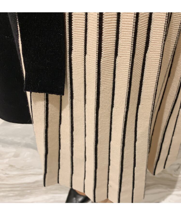 リブニットワンピース ストライプスカート バイカラー ニットプリーツワンピース ニットワンピース ワンピース ドレス a3661