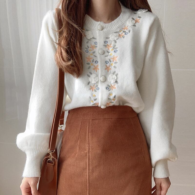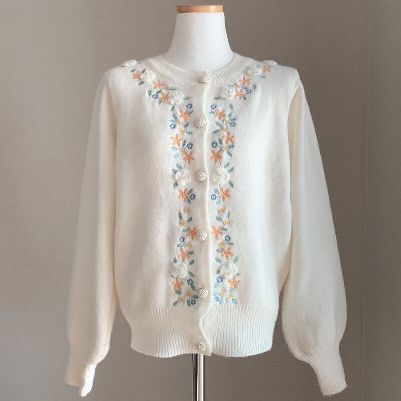 刺繡フラワーニットカーディガン ニットカーディガン レディース 花刺繍 ニット カーディガン レディース 花刺繍 通勤 a3665