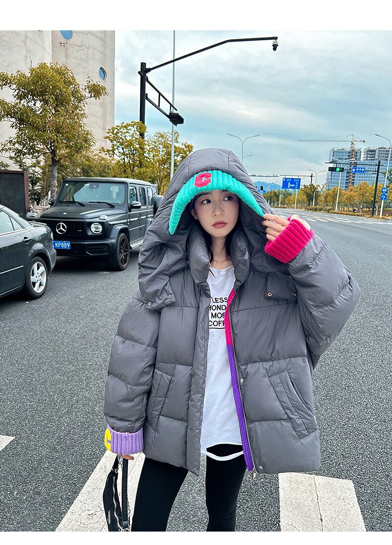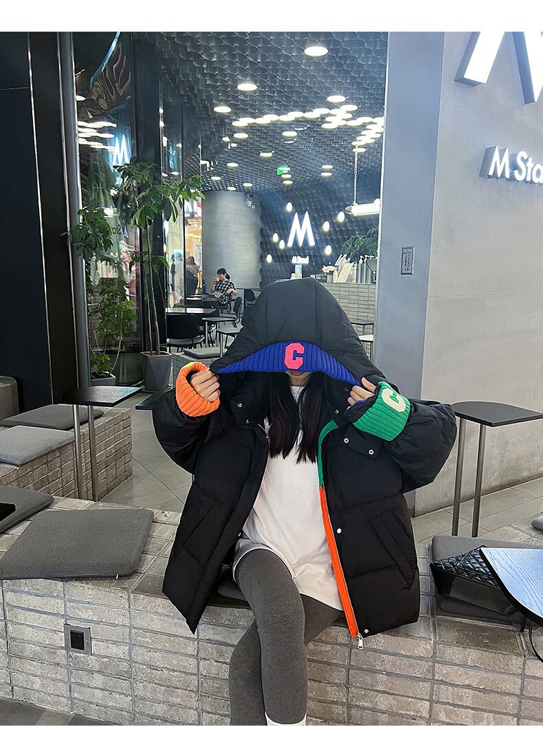 フード付きコットンジャケット コットンコート コントラストカラー ダウンジャケット ダウンコート ジャケット コート アウター 冬 a3672
