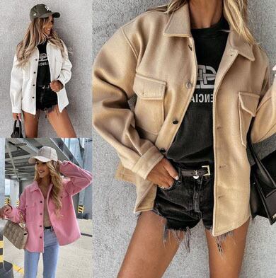 フェイクウール シャツジャケット シャツコート シングルブレスト ウールコート 無地 アメカジ ジャケット レディース アウター 3カラー a3684