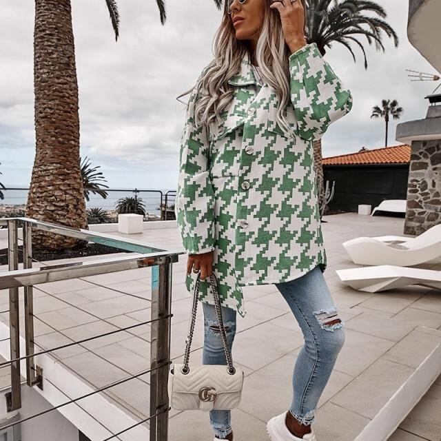 千鳥格子ジャケット チェック柄 長袖 ジャケット シャツコート シャツジャケット コート アウター レディース 秋冬 アメカジ 5カラー a3688