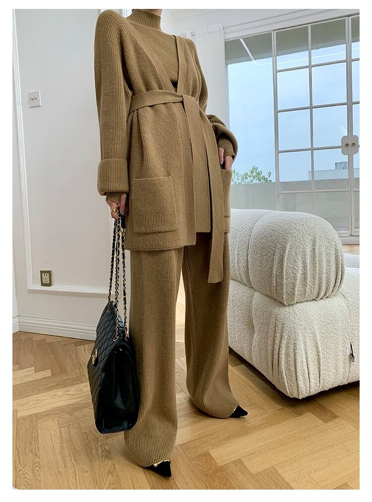 【3点セット】リブニットセーター+ニットパンツ+ワイドカーディガン