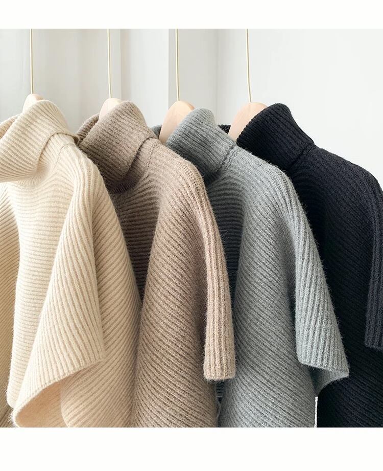 タートルネックアシンメトリーニット トップス セーター ニット イレギュラー タートルネック ドルマンスリーブ. ポンチョ a3735