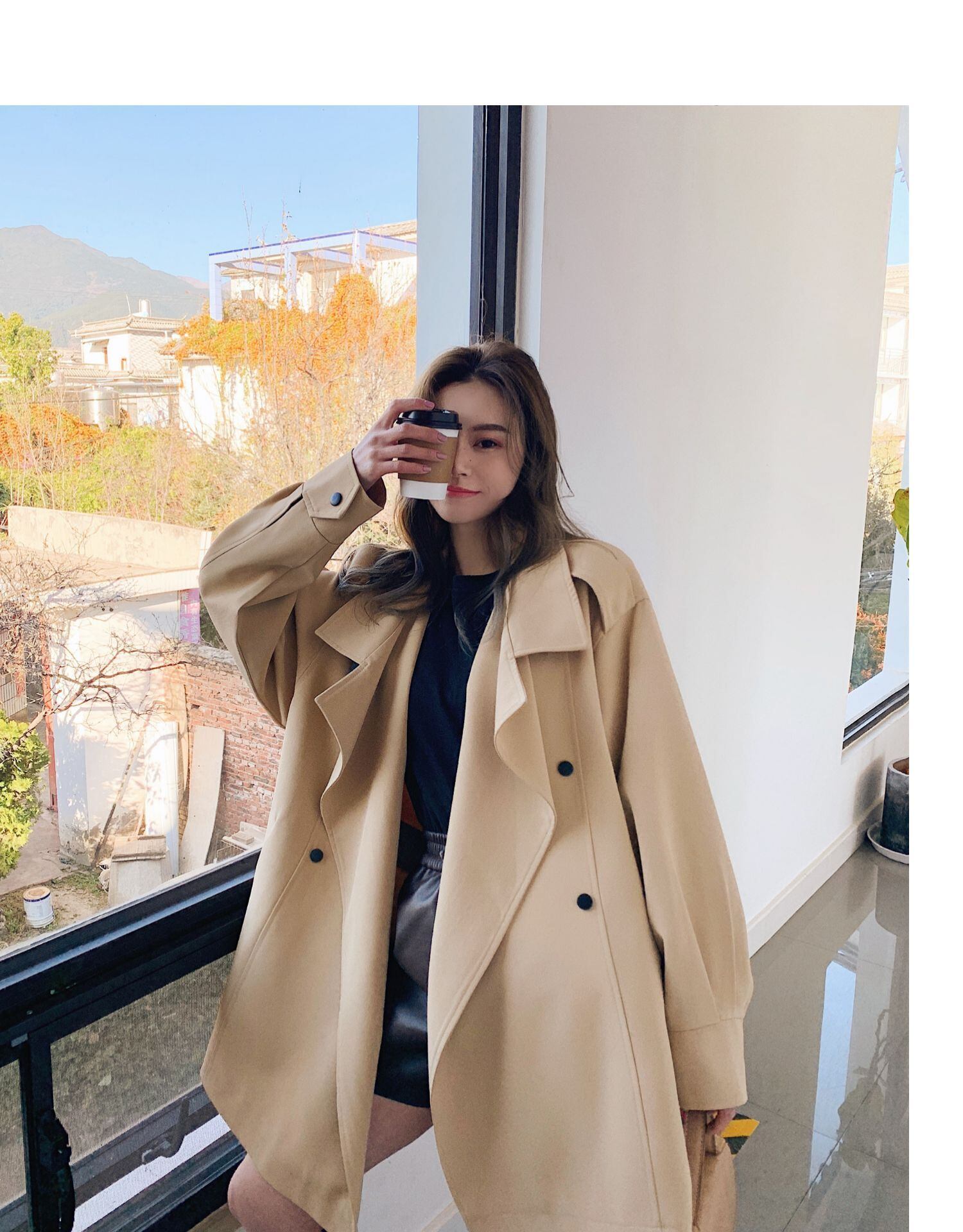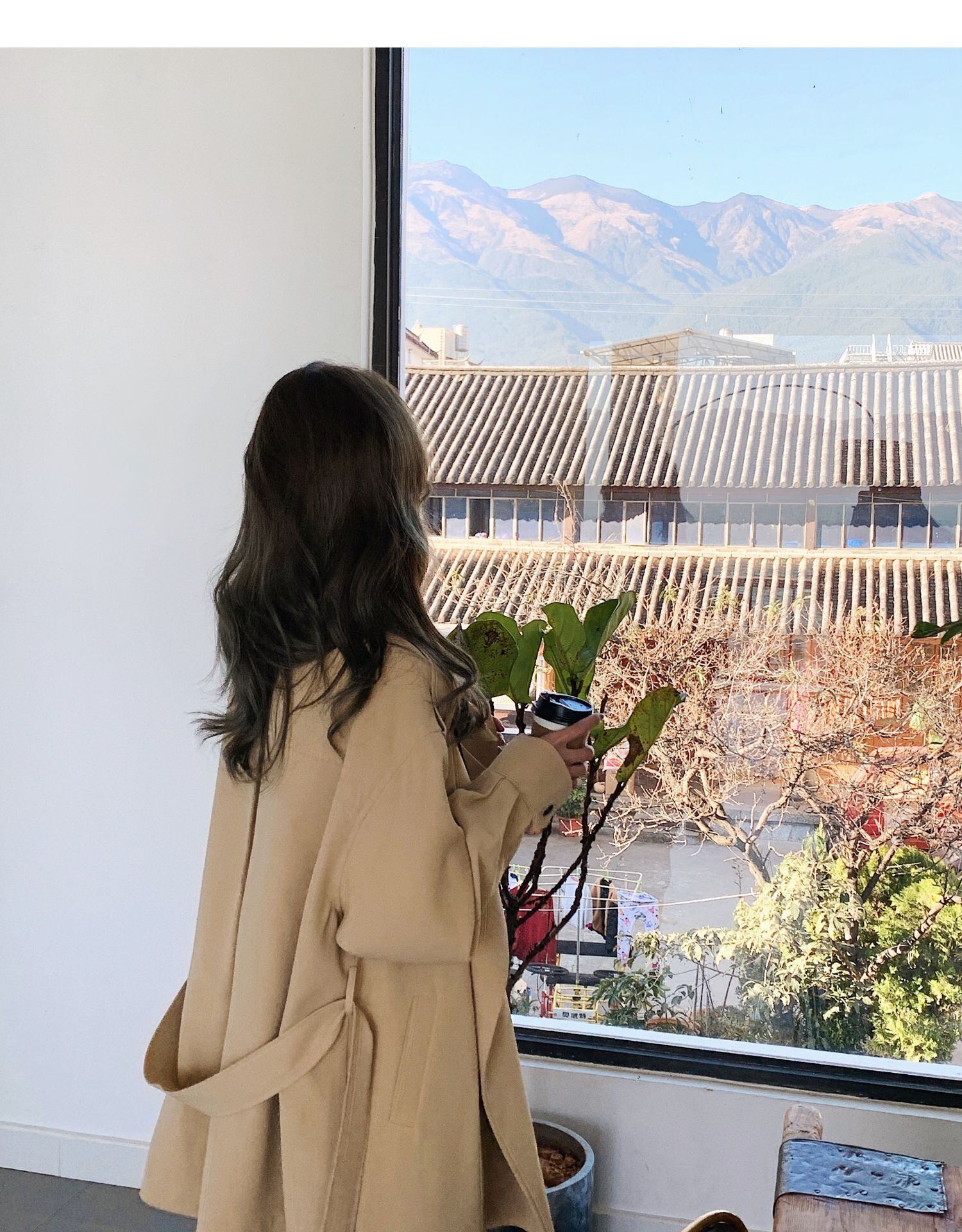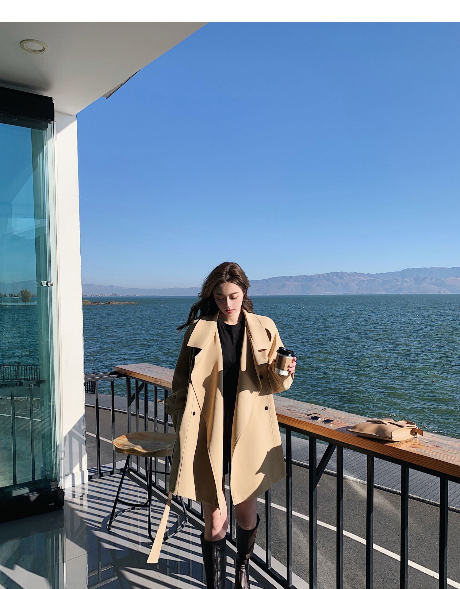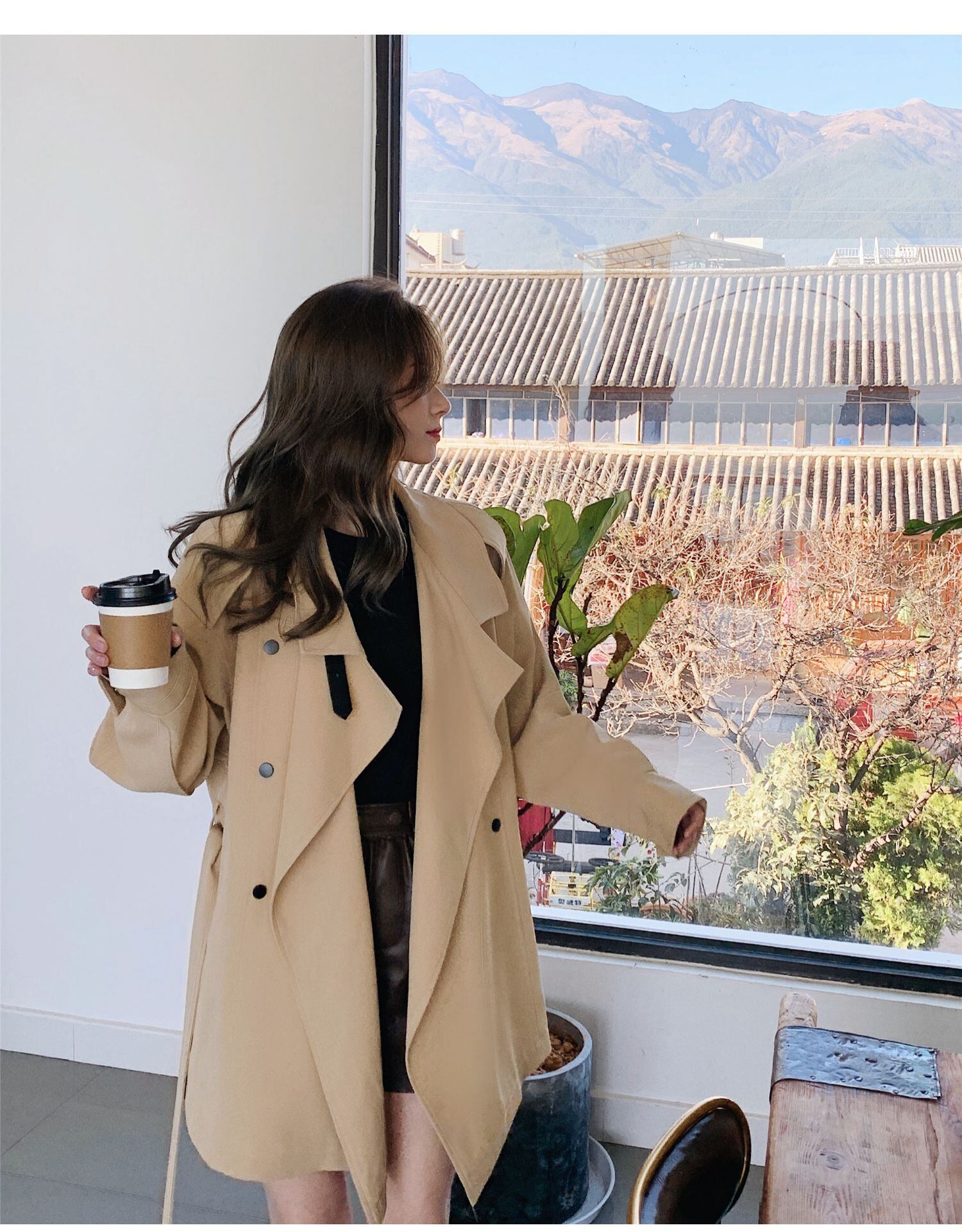 ネックベルト付き トレンチコート レディース スプリングコート ジャケット コート アウター レースアップウエスト ミドル丈 a3694