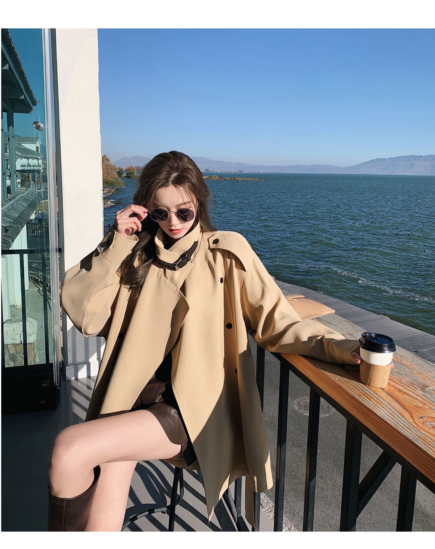 カジュアルスタイルにピッタリのネックベルト付きトレンチコート