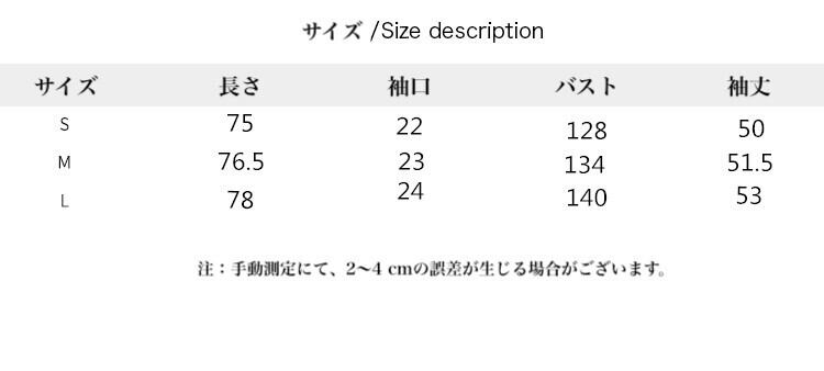 注:手動測定にて、2〜4 cmの誤差が生じる場合がございます。