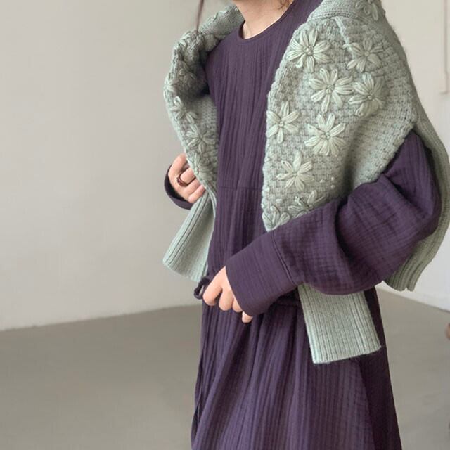立体刺繍フラワーニットセーター 花刺繍 ニット セーター 長袖 ランタンスリーブ トップス レディース 2カラー a3727