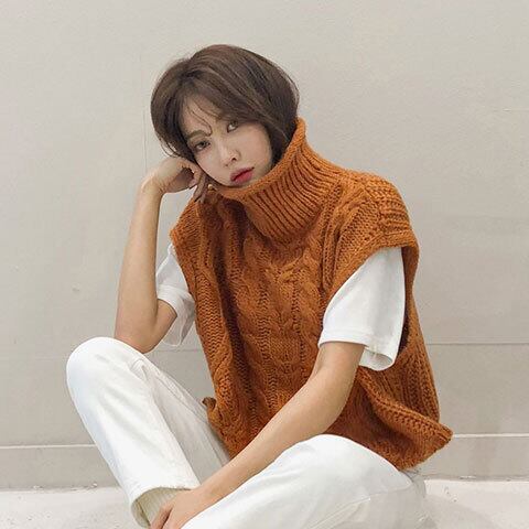 ケーブルニット ニットベスト セーターベスト ノースリーブ レディース アウターウェア 薄手 ニットベスト タートルネック ハイネック コンパクト丈 トップス 重ね着 4カラー. a3748