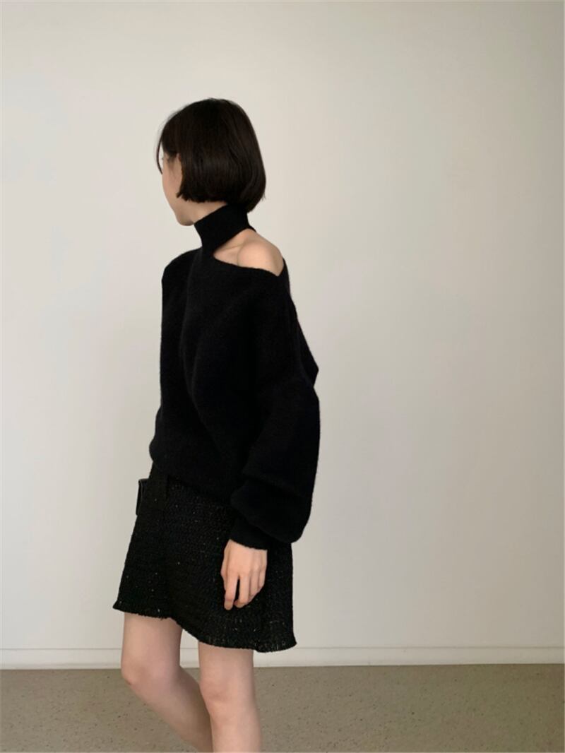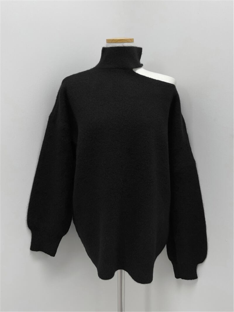 ショルダーカットニット タートルネックセーター ニット セーター レディース 無地 長袖 オフショルダー オフィス 3カラー a3749