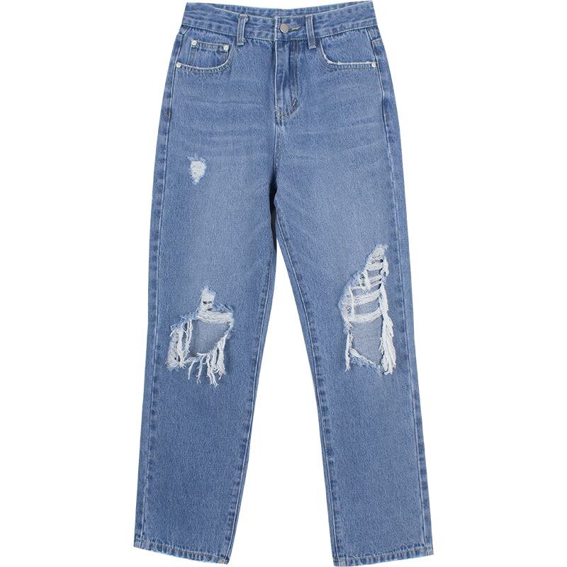 ダメージストレートデニム ダメージジーンズ ストレート デニム ジーンズ ダメージ加工 ボトムス ハイウエスト レディース アメリカン レトロ. a3766