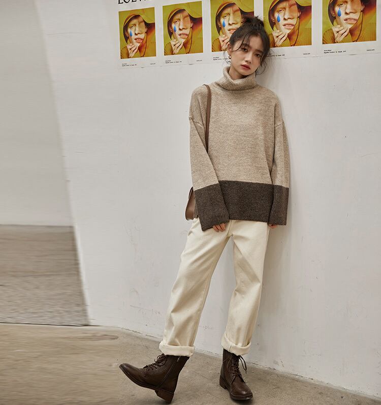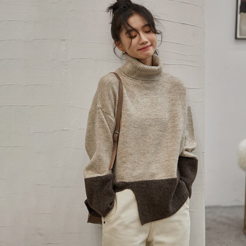 タートルネックニットセーター 裾スプリット セーター ニット トップス レディース 秋冬 カジュアル オフィス a3767
