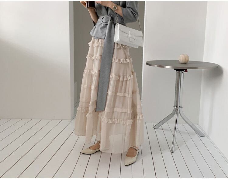 ラッフルロングスカート フリルバロックスカート スカート シフォンロングスカート レディース ケーキスカート. a3743