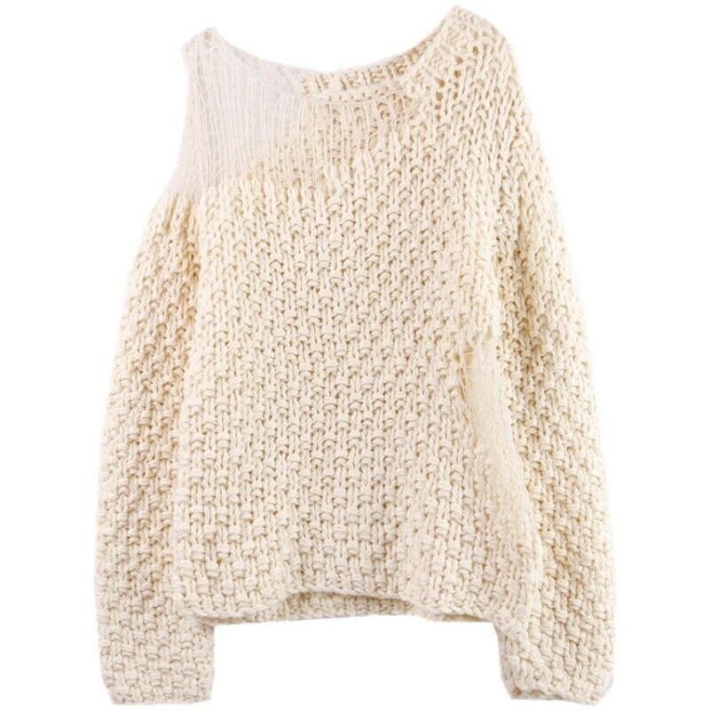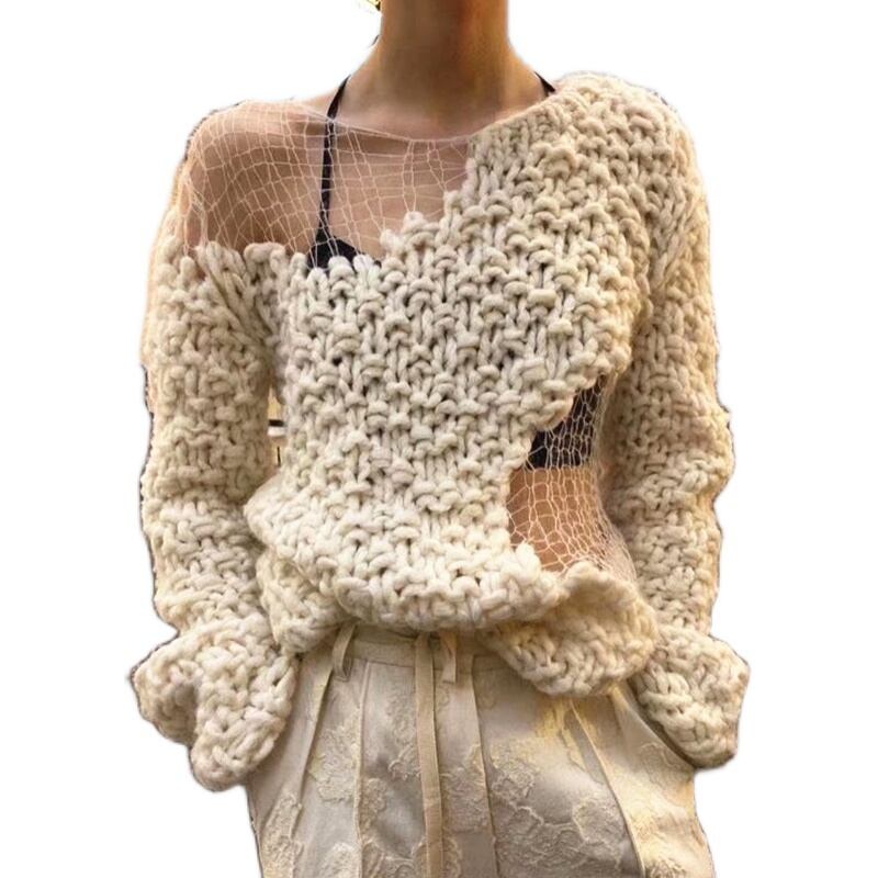 【日本未発売】メッシュステッチセーター かぎ編み セーター ニット 長袖 レディース トップス 秋冬 2カラー a3782