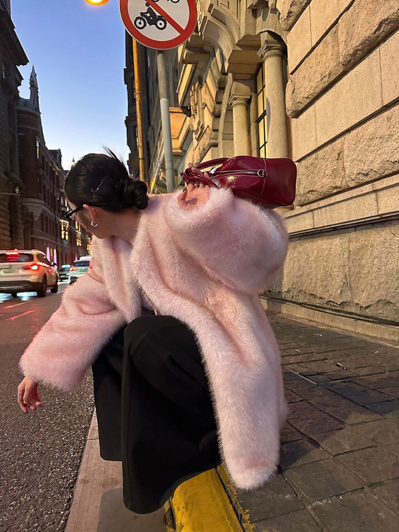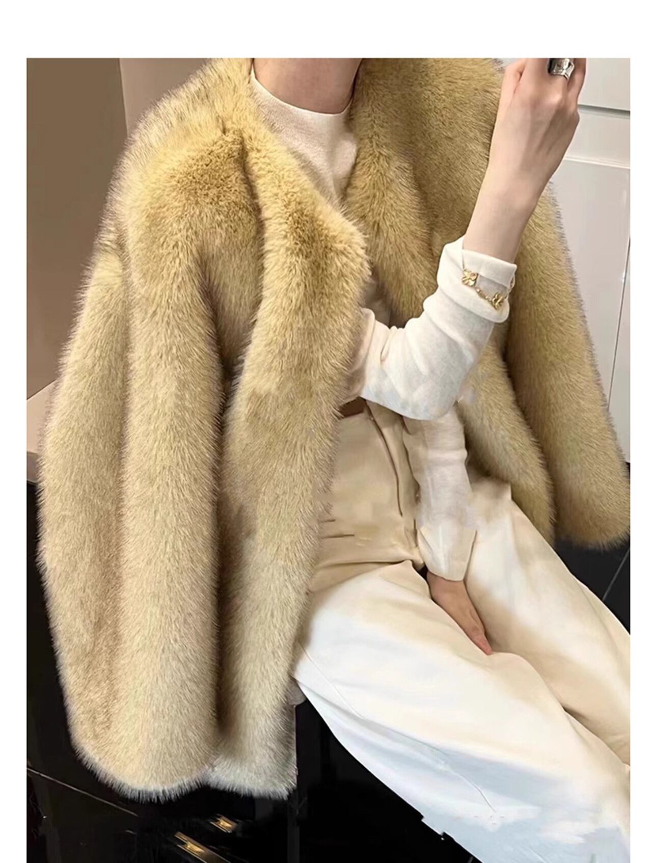 ふわふわゴージャスなノーカラーエコファーコート