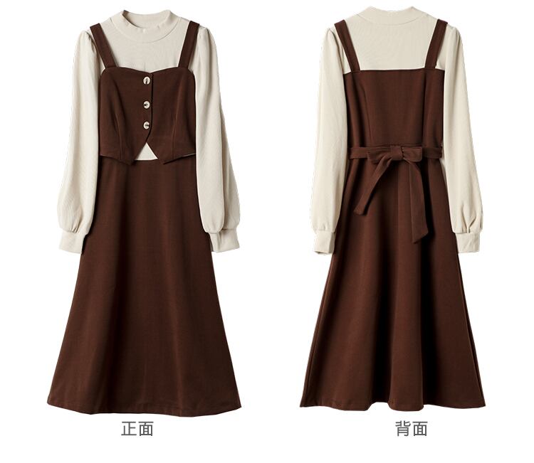 フェイクツーピース ワンピース ドッキングワンピース ロングスカート レディース 秋冬 フレンチ a3791