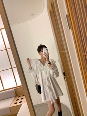 ふんだんに使われたフリルが可愛いVネックフリルワンピース