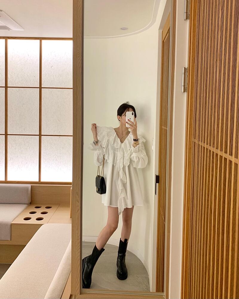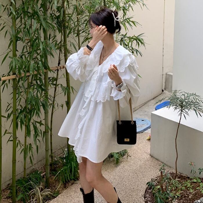 Vネックフリルワンピース フリルワンピ ミニワンピース フリル ワンピース ドレス かわいい レディース デート a3775