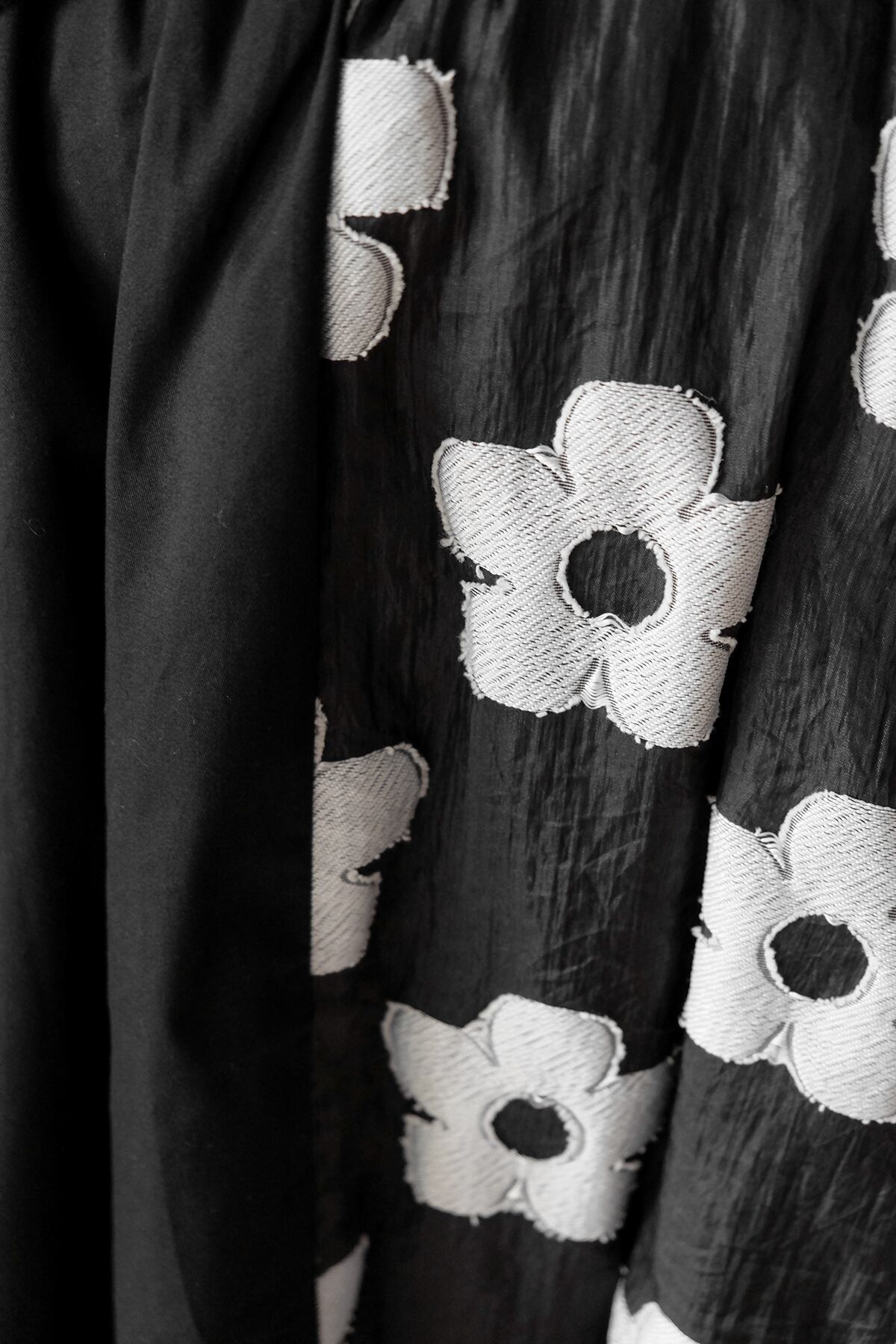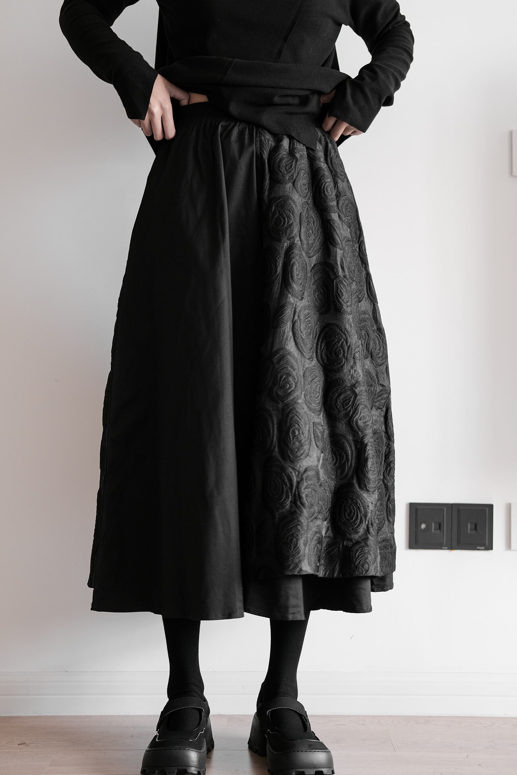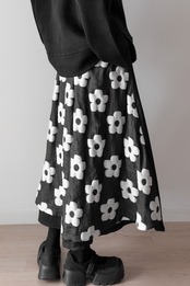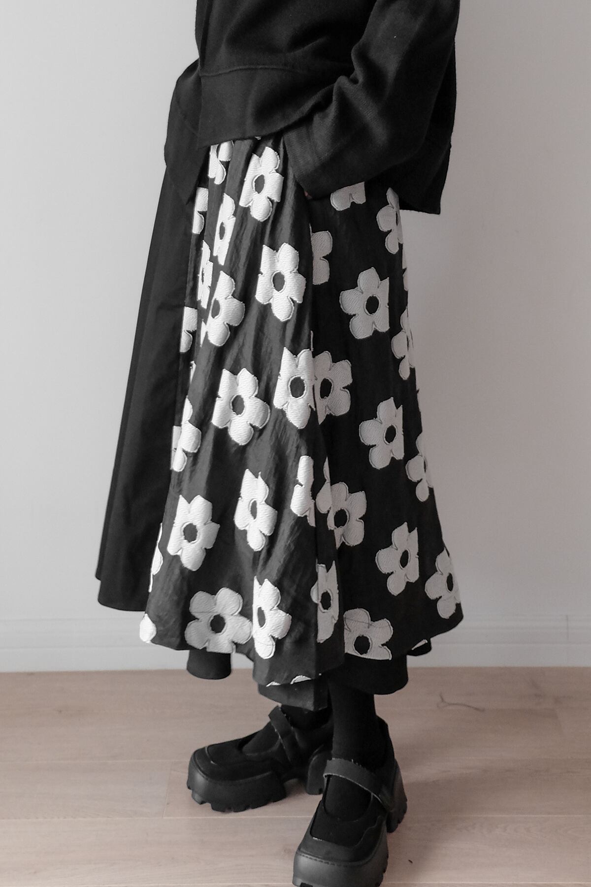モードっぽさがカッコいい花柄刺繍フレアスカート
