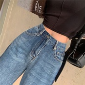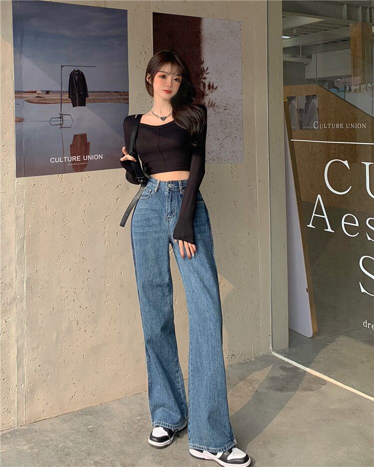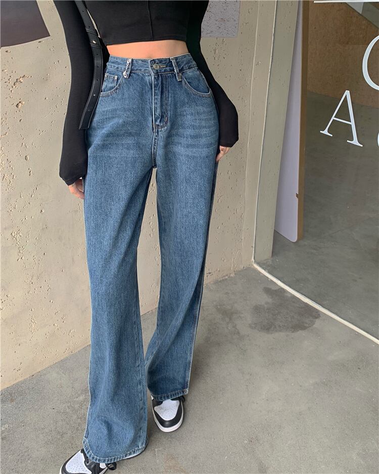 ストレートデニム ストレートジーンズ ハイウエスト デニム ジーンズ ワイドレッグパンツ レディース ロングパンツ レディースパンツ カジュアル a3812