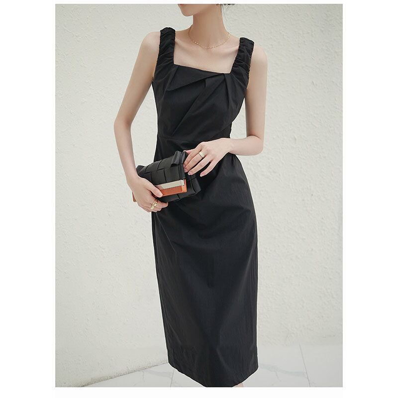 ギャザーワンピース ノースリーブワンピース サスペンダードレス ワンピース ドレス フレンチ レディース パーティー オフィスコーデ 2カラー a3795