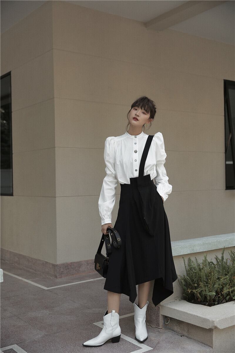 ストラップ付きスカート 不規則スカート スカート モード系 ハイウエスト 立体カットストラップスカート a3876