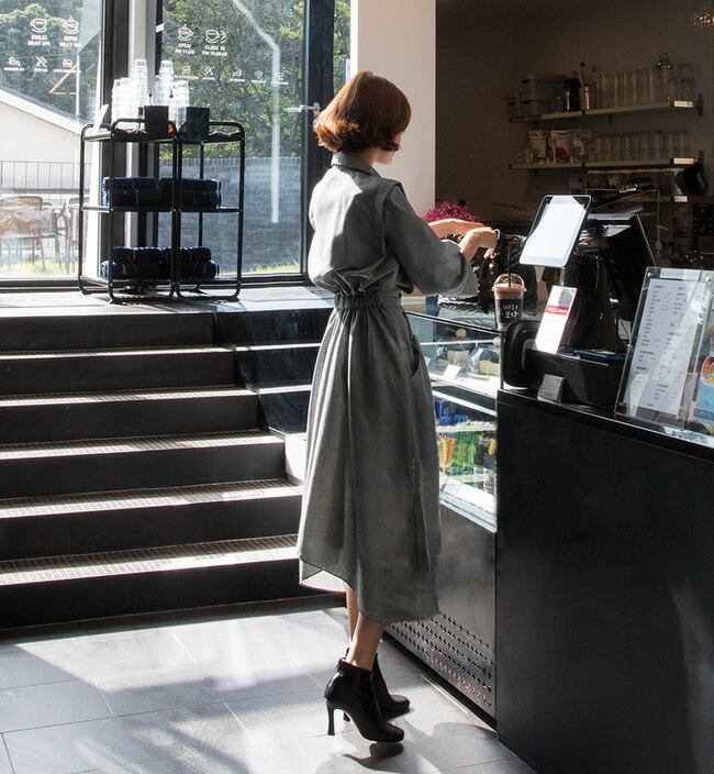 スーツカラーの上品なシャツワンピース