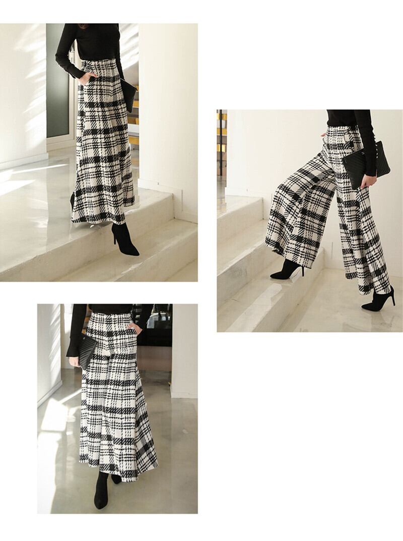 チェック柄フレアワイドパンツ ワイドパンツ フレアパンツ ハイウエスト フレアワイドパンツ チェック柄 ウールカジュアルパンツ a3882