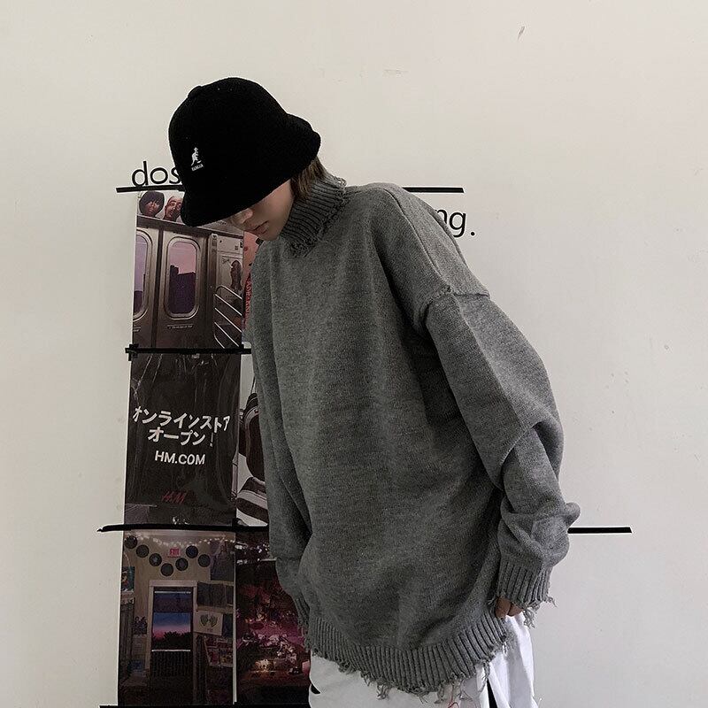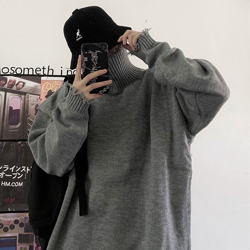 エッジニットセーター プルオーバー 無地 タートルネック セーター ニット トップス. レディース ストリート 2カラー a3883