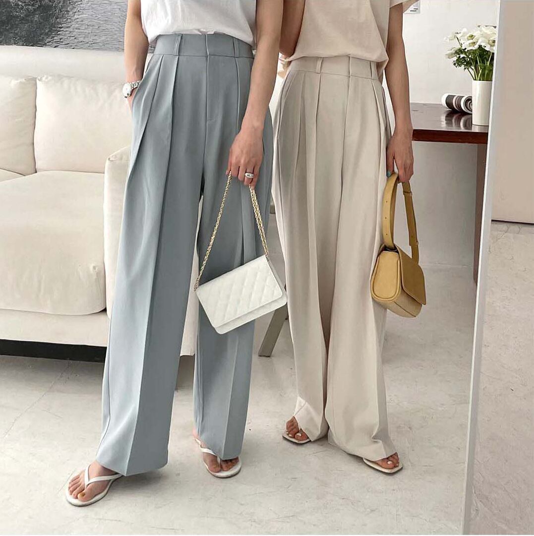 カジュアルドレープパンツ ストレートパンツ ワイドパンツ ハイウエスト ルーズ カジュアル 無地 レディース 韓国 3カラー a3886