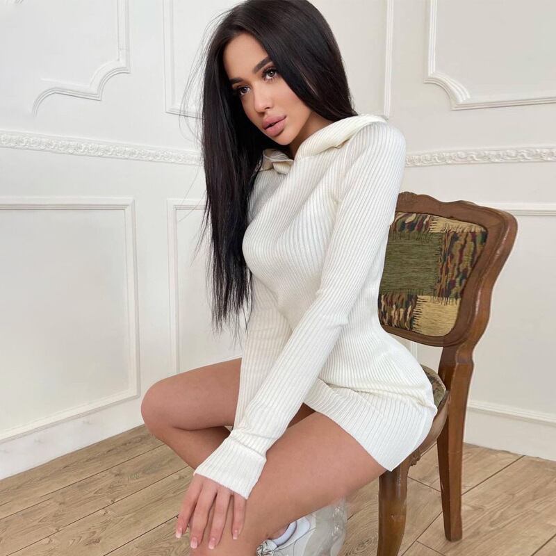 フード付き ニットワンピース リブニットワンピース 長袖 ワンピース ドレス ミニワンピ ストリート アメカジ スリム 3カラー a3896