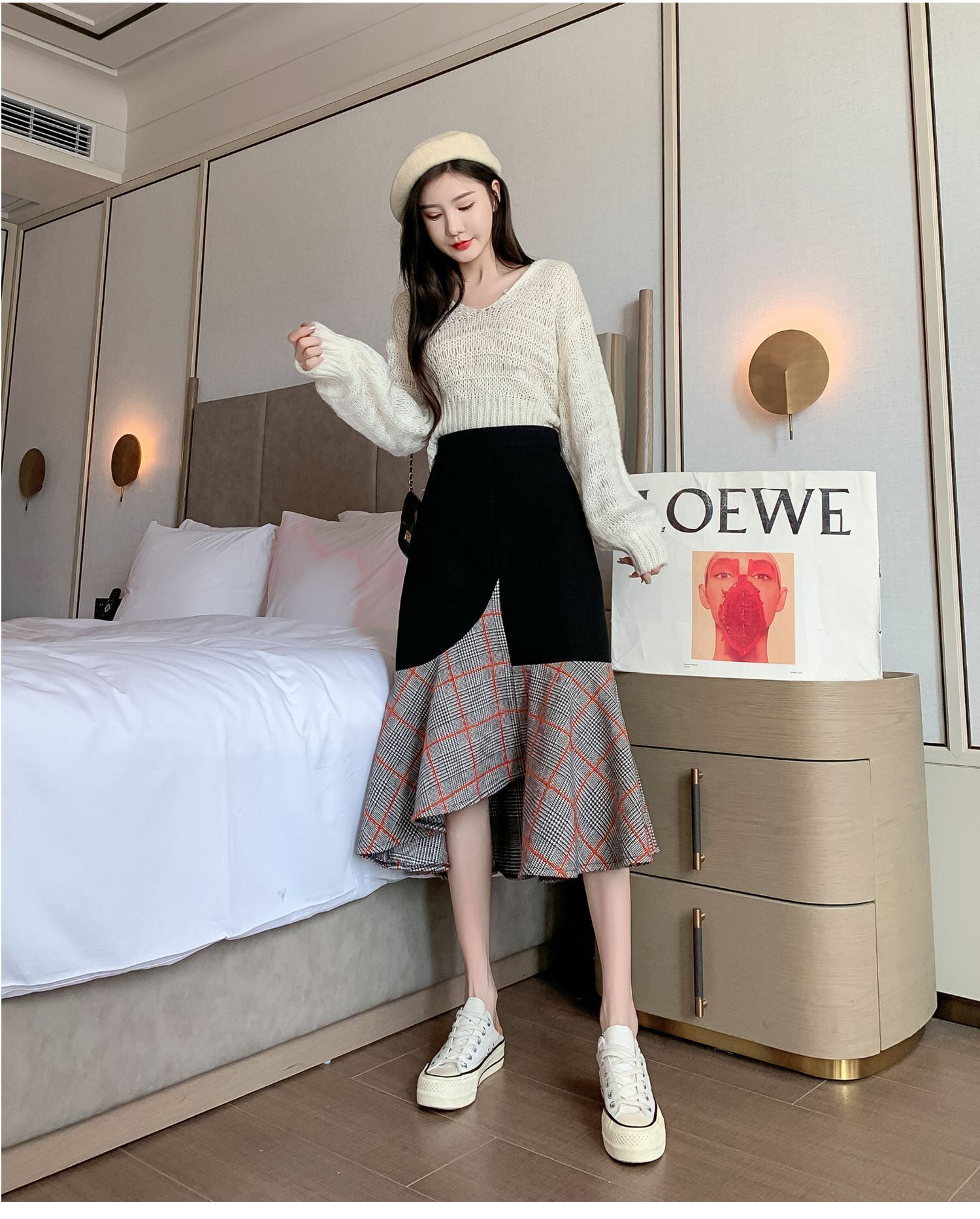 チェック柄 マーメイドスカート Aラインスカート レディース ハイウエスト スカート ミドル丈 フィッシュテールスカート オフィスコーデ デート かわいい a4077