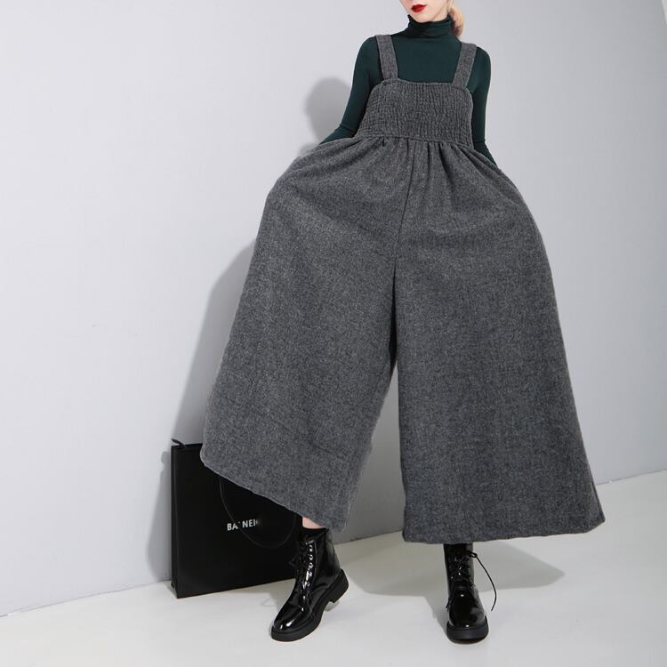 オールインワン ハイウエスト ワイドパンツ トップ 無地 ゴム仕様 シャーリング サロペット オーバーオール レディース ゆったり オールインワン サロペ オールイン 個性的 モード系 2カラー a4080