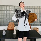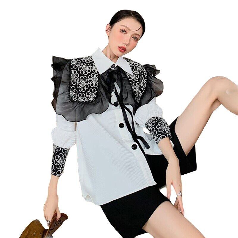 【2点セット】フリルショール+長袖シャツ ショール付きシャツ フリルホワイトシャツ ガーリー モード系 レディース オフィスコーデ a3974