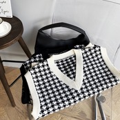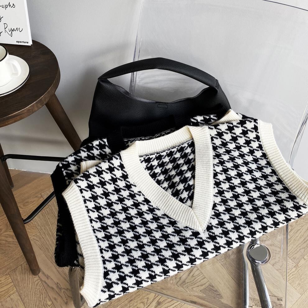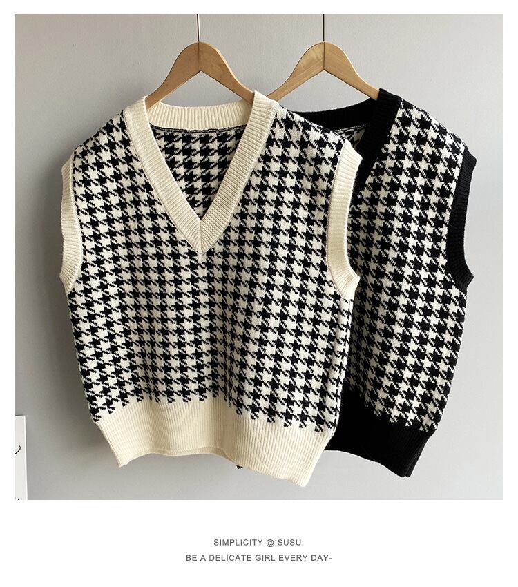 Vネック千鳥格子ニットベスト ニットベスト ベスト チェック柄 セーターベスト レディース ノースリーブ ベストジャケット 学生. オフィスコーデ オルチャン 2カラー a3975