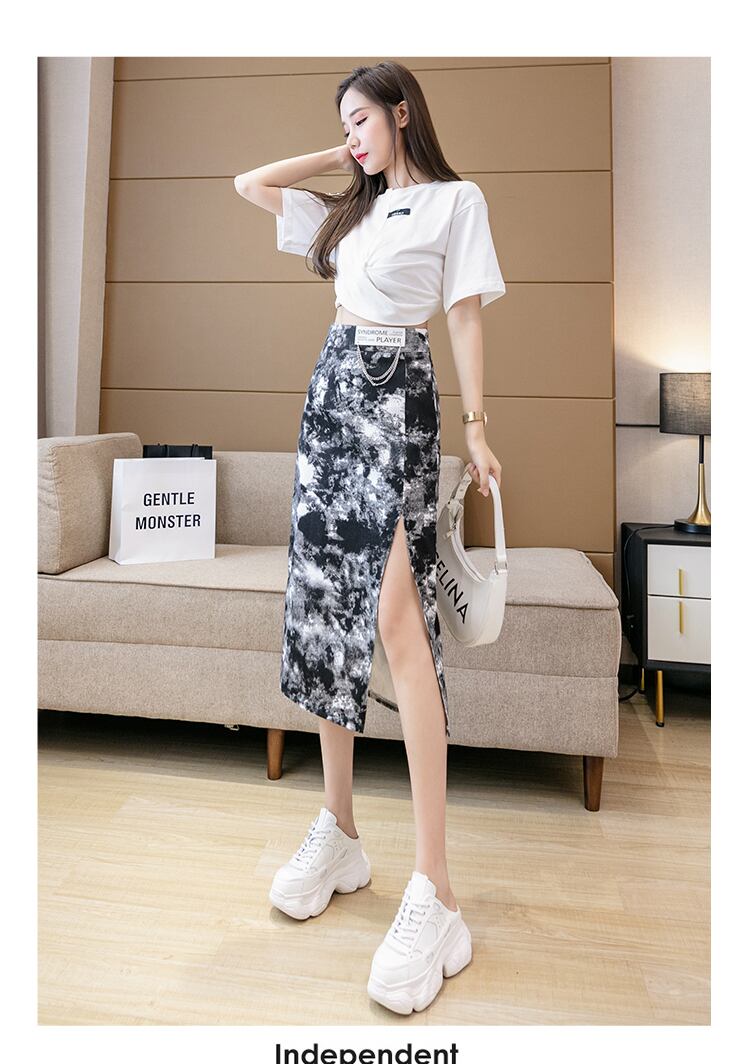 タイダイ柄ミディスカート スリット ハイウエスト レトロ Aラインスリットスカート ボトムス 春夏 レディース a3992