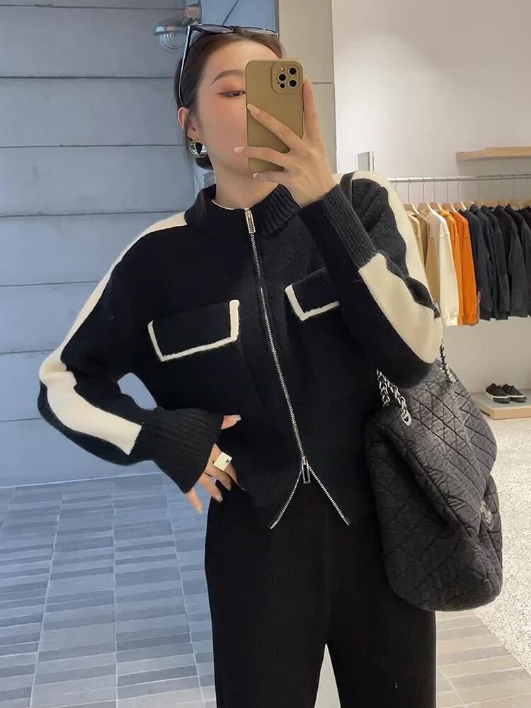 ダブルジップカーディガンジャケット ニットカーディガン カーディガン ジャケット アウター レディース ショート丈. 韓国 オルチャン 4カラー a4047