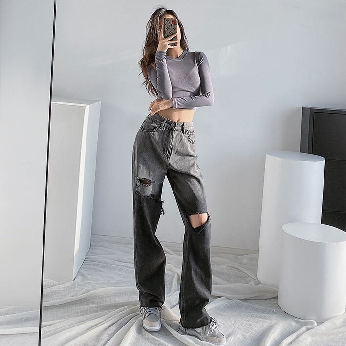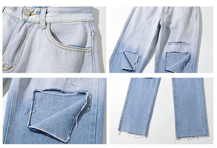 グラデーションストレートジーンズ ダメージジーンズ デニム ジーンズ ダメージデニム レディース ハイウエスト ルーズ. アメカジ カジュアル ストリート a4074