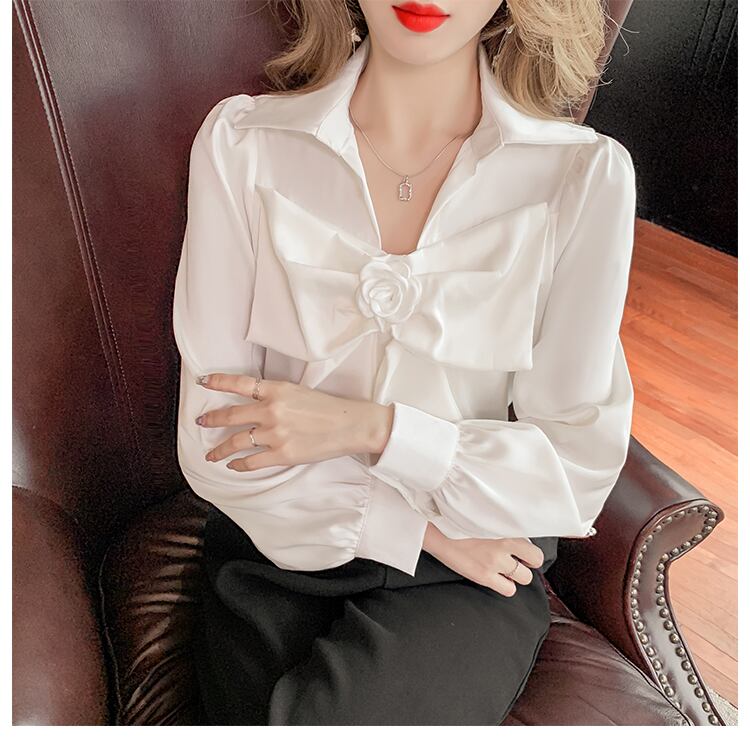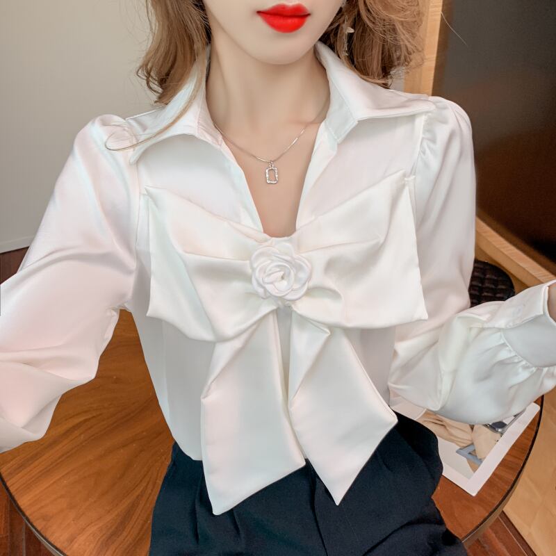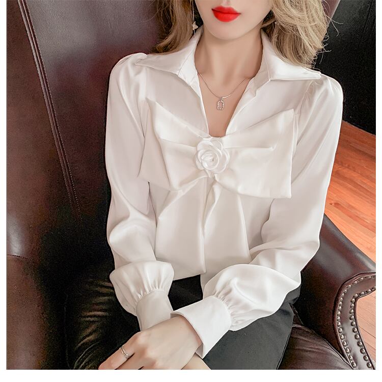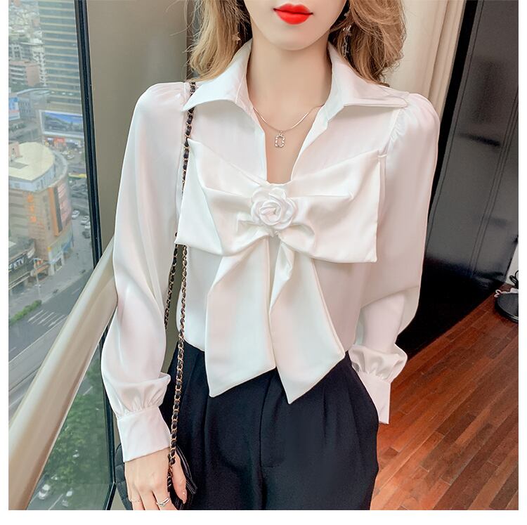 BIGリボンブラウス 長袖 シャツ ブラウス ホワイト ガーリー お仕事コーデ レディース オフィスコーデ a4090