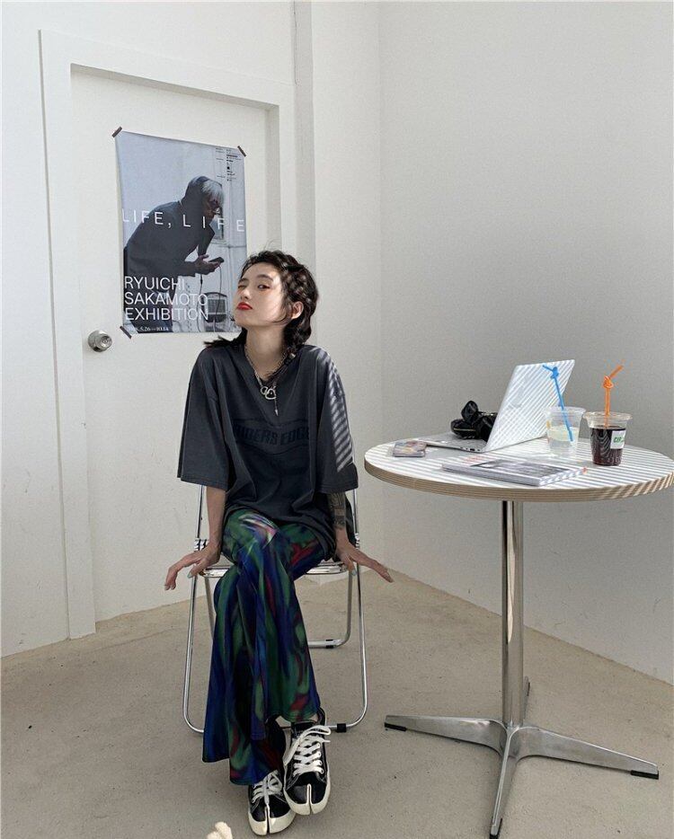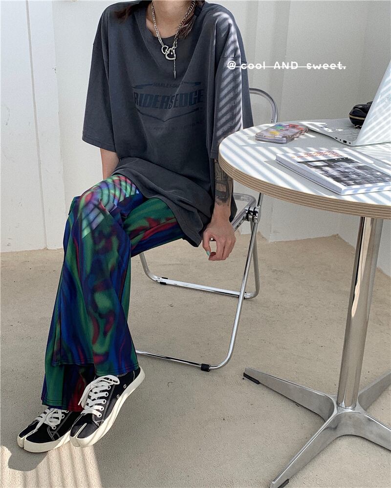 オーロラフレアパンツ カジュアルパンツ ストレートパンツ ボトムス アメカジ カジュアル ストリート ハイウエスト 美脚 a4106