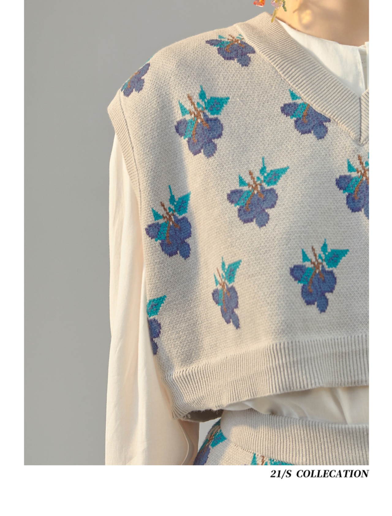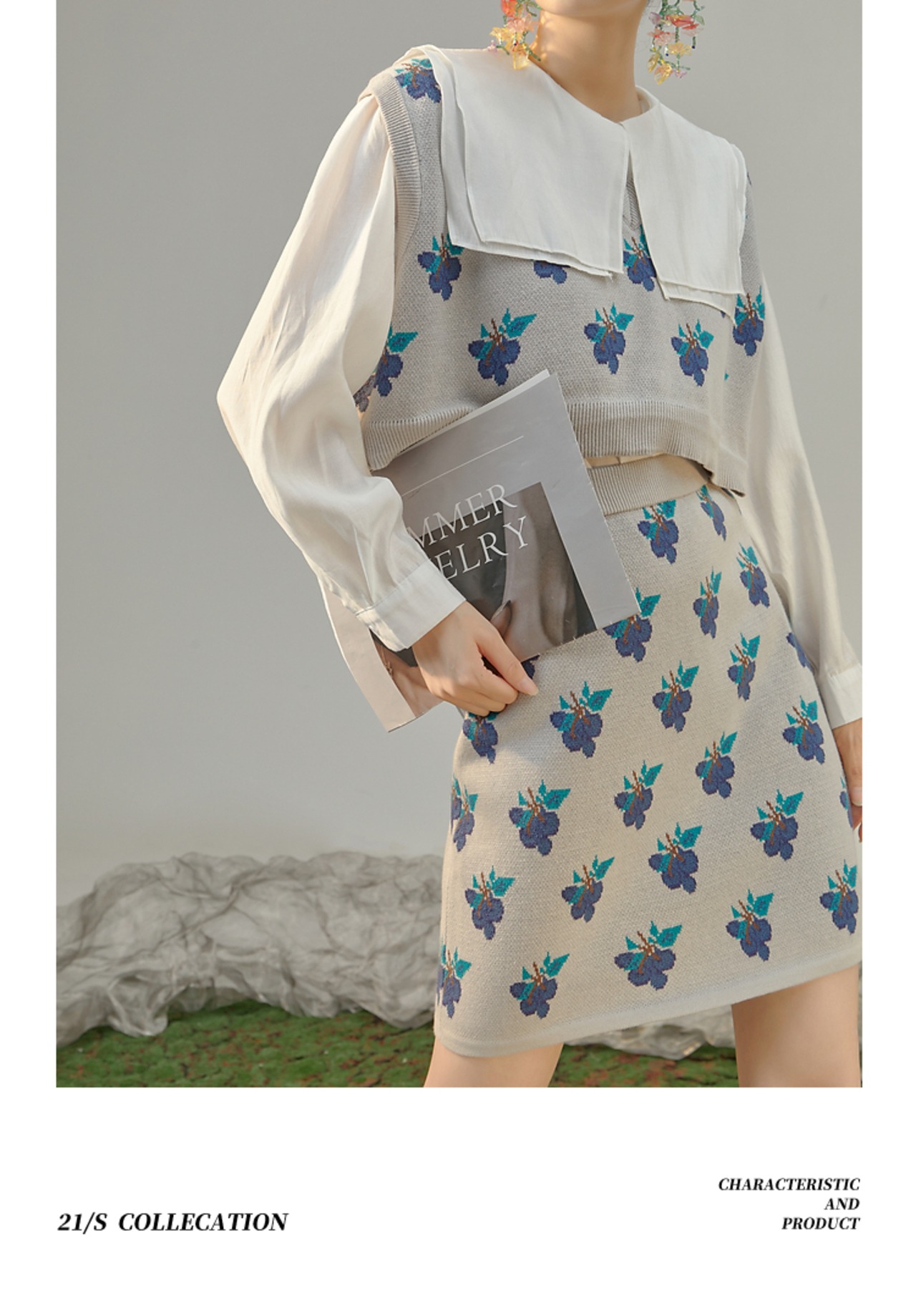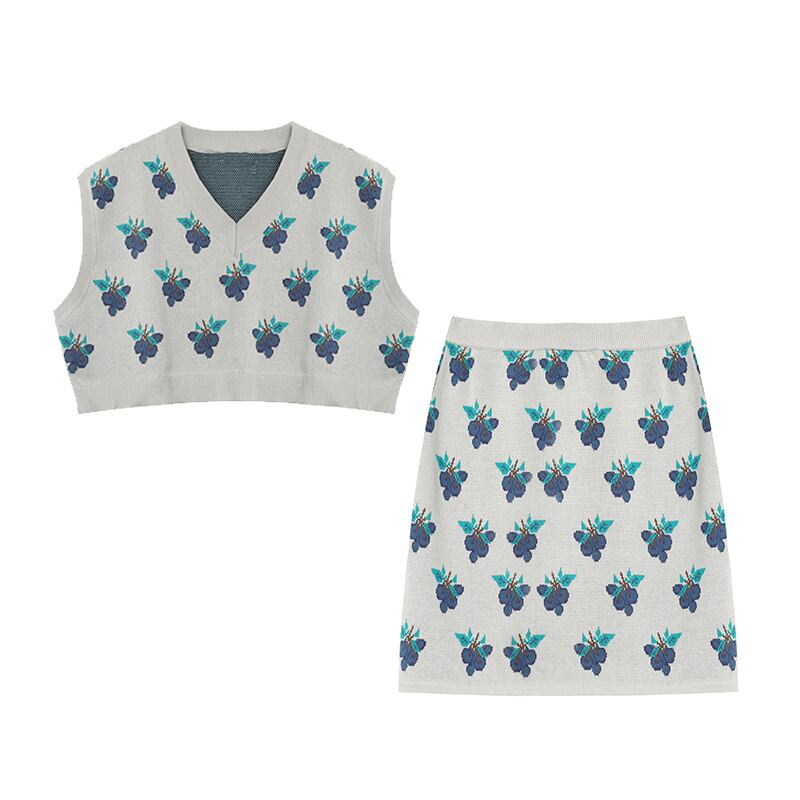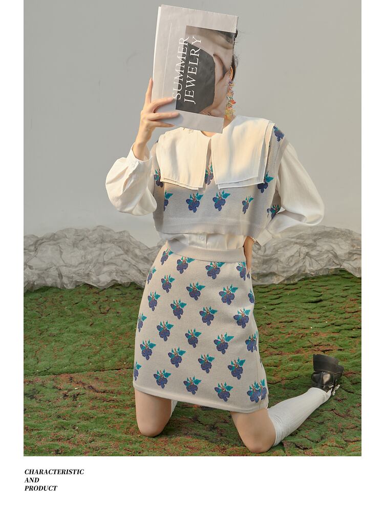 【セットアップ】ニットベスト+ニットスカート ツーピース. ニットアップ 上下セット. レディース ニット ベスト スカート かわいい フルーツ柄 a4136
