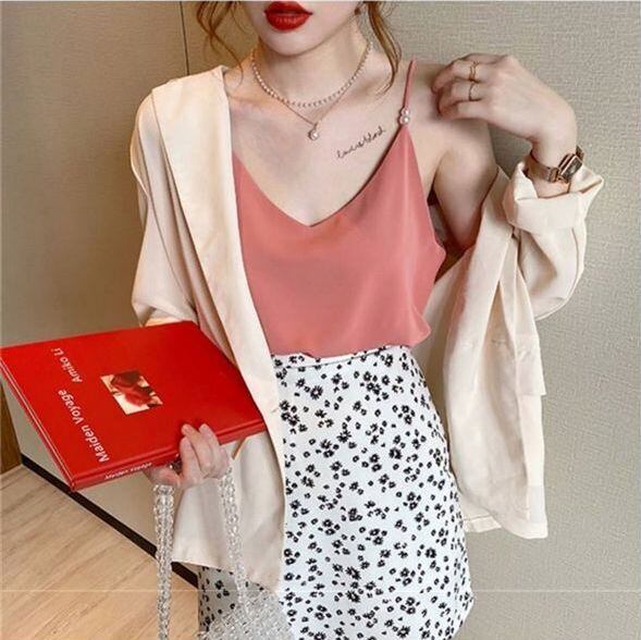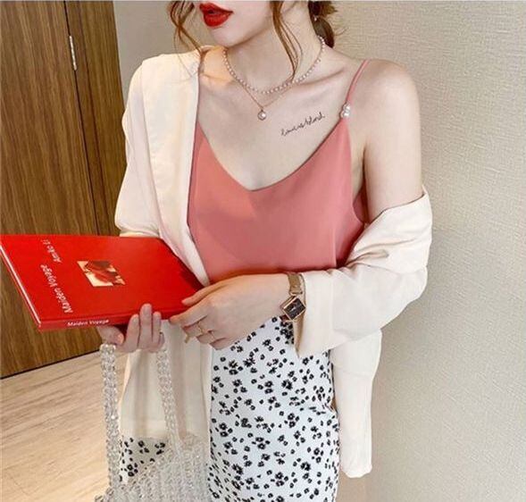 パール付きキャミソール シフォン キャミソール インナー トップス セクシー レディース かわいい 6カラー. a4140