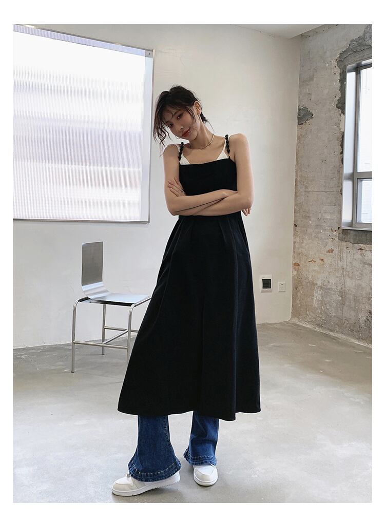 【日本未発売】サスペンダースカート キャミソールワンピース ロング ワンピース レディース モード系 ブラックコーデ オシャレ Aライン ハイウエスト a4141