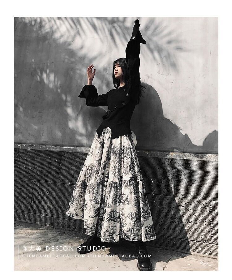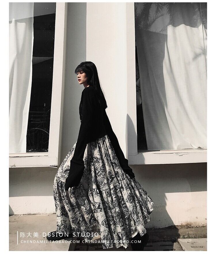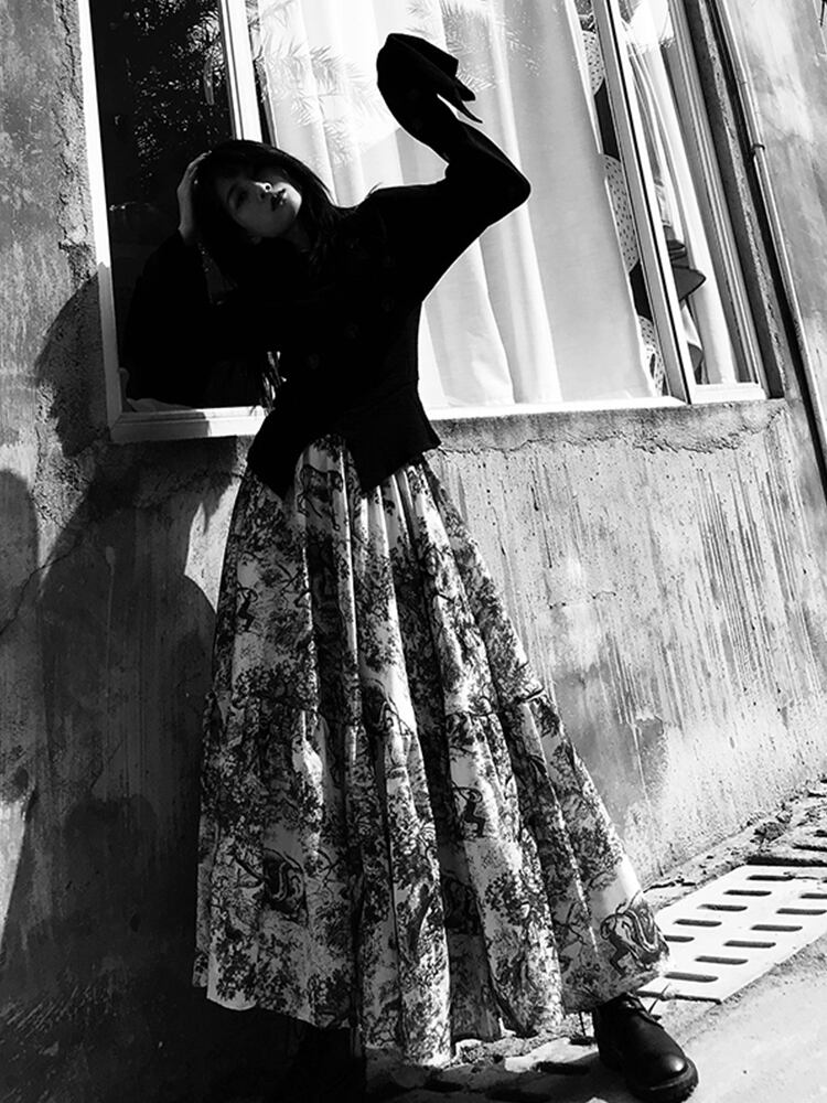 レトロプリント Aラインスカート プリーツスカート ミドル丈 スカート ハイウエスト レディース フレア a4143