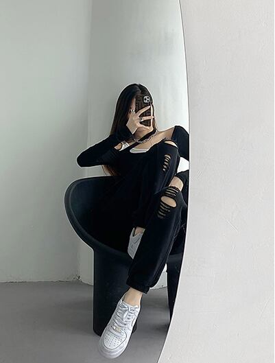 大胆ダメージがかっこいいダメージブラックパンツ