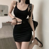 キャミソールワンピース カットアウト ウエスト キャミワンピ キャミソール ワンピース ドレス タイトワンピース セクシー レディース サスペンダードレス 2カラー a4149
